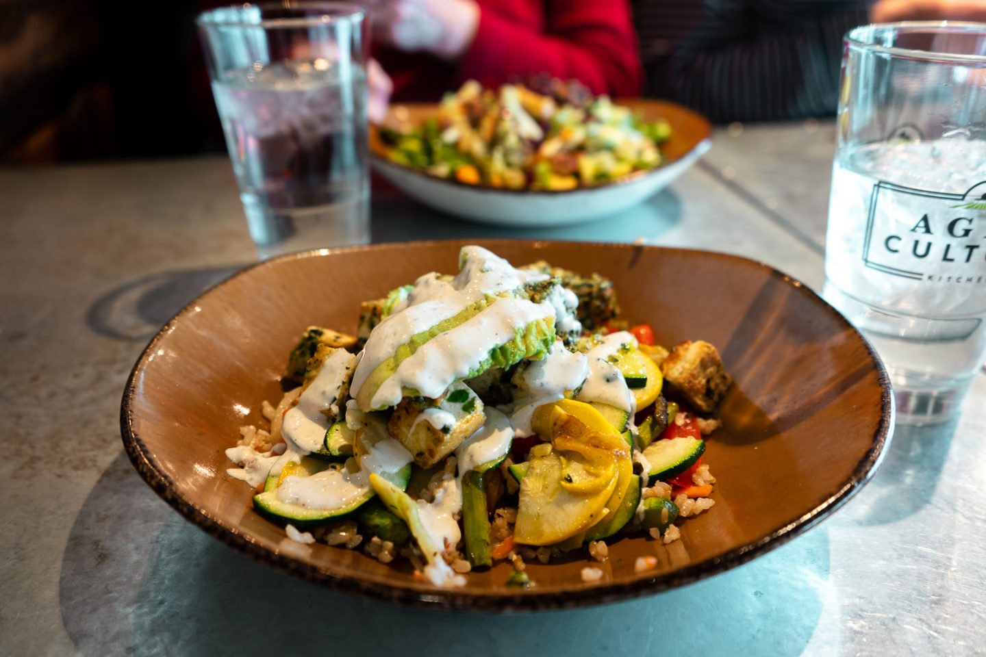 This place is great for very verdant and healthy feeling food. The Agra Bowl with chicken or steak really captures the flavors of their restaurant. It also has the best tofu if you are looking for some.