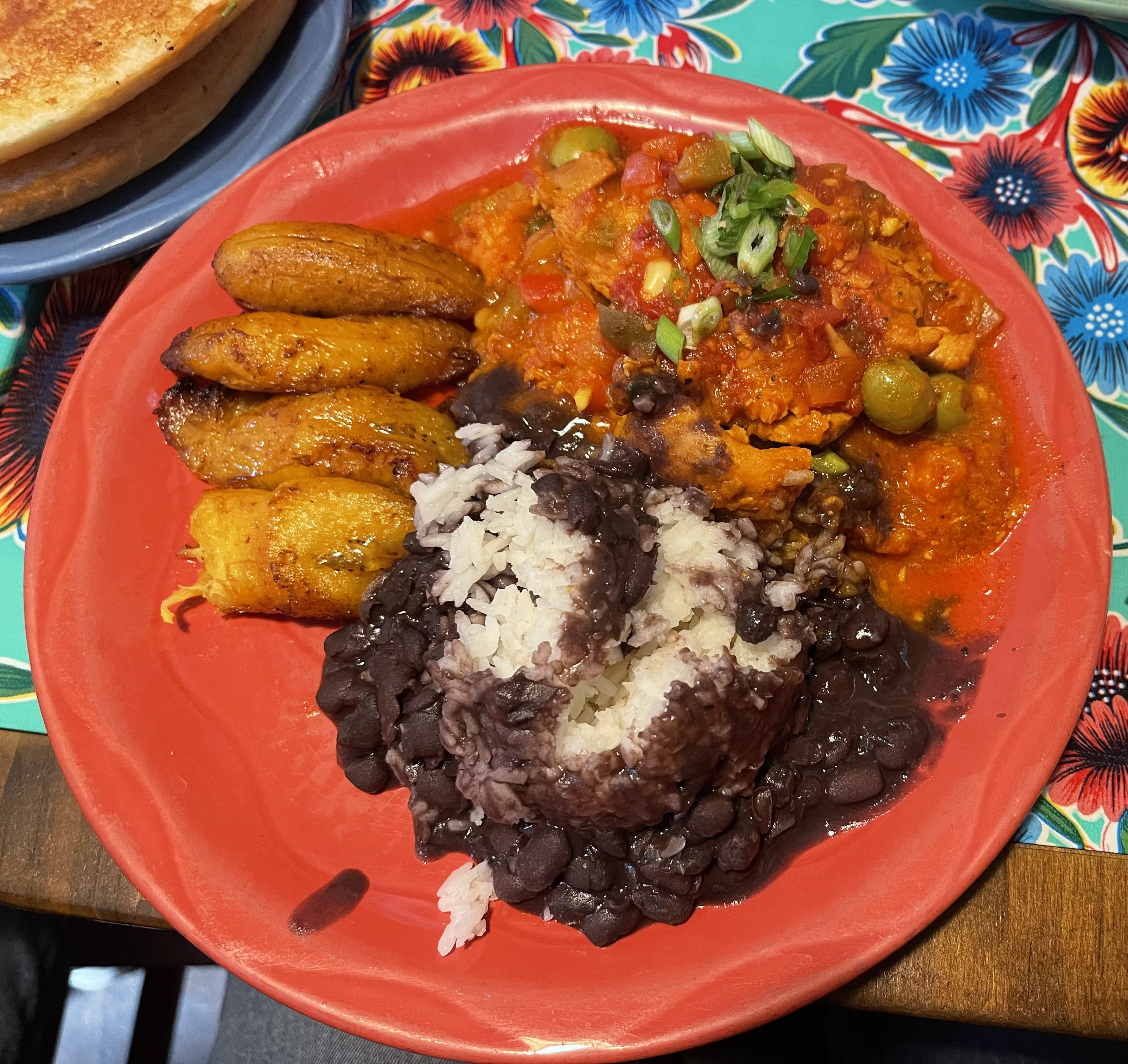 The food here was made so that you can take a bite of only one thing, or 5 all at once, and you will always be happy with the taste. The plantains are a must have, and be sure to try all the sauces they offer. If you come here, get early, as it is always busy.